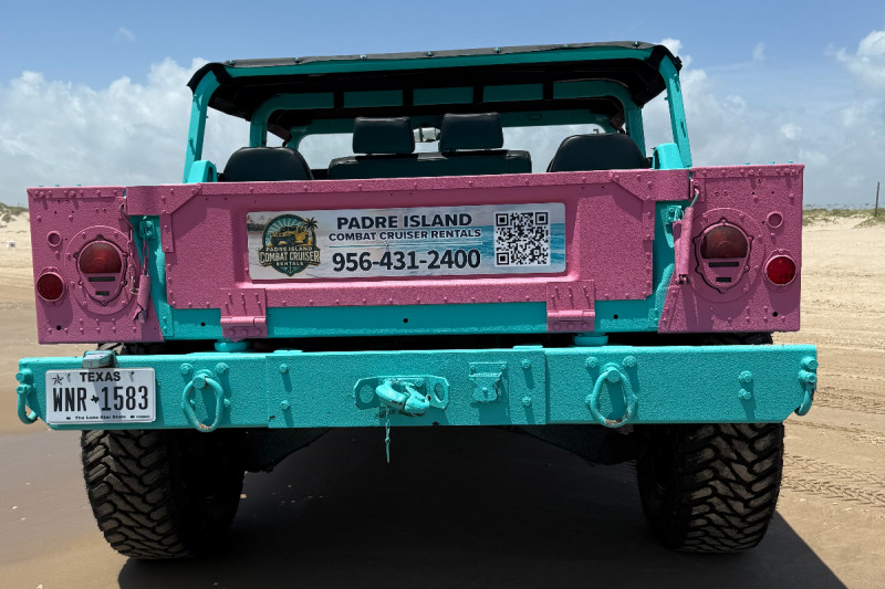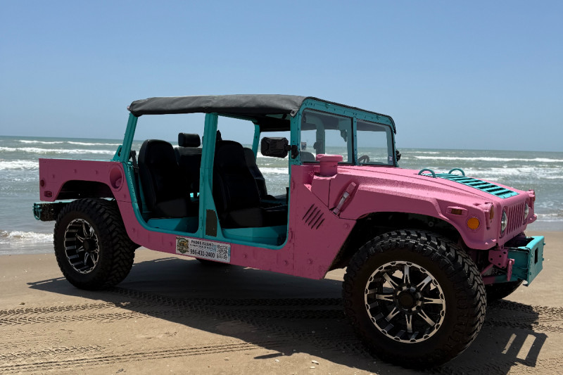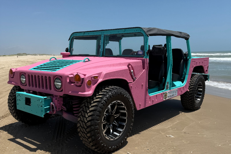 A Humvee, particularly one modified as a "personal" version for with a modified interior to accommodate six passengers. A civilian version of the Humvee, is a full-size, four-wheel-drive utility vehicle known for its rugged off-road capabilities. The goal is to create a comfortable and visually appealing interior for a larger group, while still retaining the Humvee's robust nature.